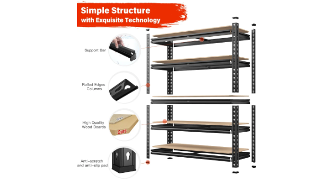 - ③ Anti-Oxidation and Rust-Resistant: The steel frame and columns of the garage storage shelves are treated with a powder-coating process, providing them with excellent anti-oxidation and rust-resistant properties. This ensures the shelving remains durable and can last for decades!