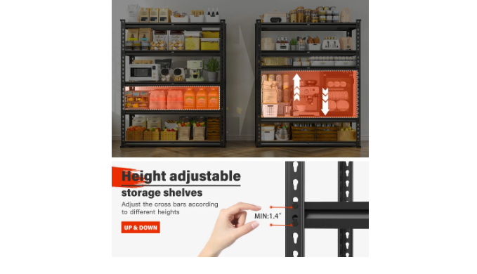 - Adjustable Height: Each shelf of the garage metal shelving unit can be flexibly adjusted to accommodate items of different sizes, catering to your specific needs.