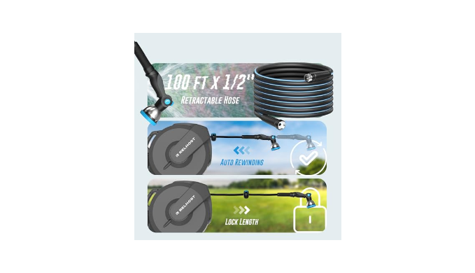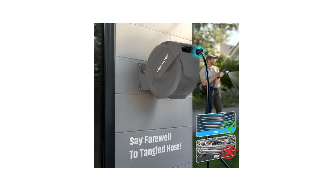 Breezy Retraction, Automatically Tidy: No matter how far the hose is stretched, it can be retracted safely and slowly after a slight pull. Besides, the upgraded guide of the self-winding hose reel ensures a kink and tangle-free retraction, every time