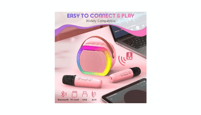 [Upgraded Hi-Fi Sound & Bluetooth 5.4] - This best mini karaoke machine pairs in seconds via next-gen Bluetooth 5.4 and stays rock-solid, even in busy rooms. A smart audio chip delivers clearer vocals and balanced bass. Lower latency keeps music and mic audio in sync across streaming apps—no dropouts.