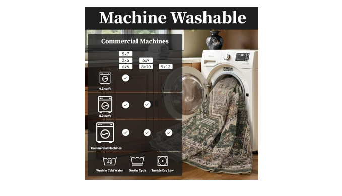 Easy Care: Maintain your rug effortlessly by vacuuming regularly to remove dust and dirt. For deeper cleaning, it is machine washable on a gentle cycle with water below 40°C, using a mild detergent or rug cleaner when necessary. Rotate the rug regularly, especially if exposed to direct sunlight, to ensure even fading over time