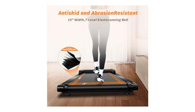5-layer high-fibre running belt of the treadmill for home and 15\" wider design with damped suspension shock absorption releases gravity from the foot strike to protect knees and ankles while walking, jogging and running with this portable treadmill.