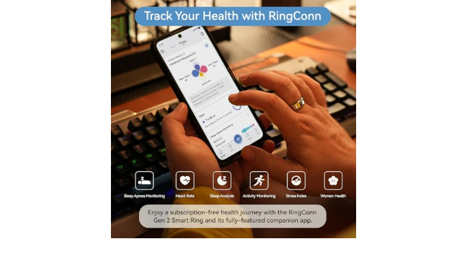 [Sleep Apnea Monitoring] RingConn Gen 2 Smart Ring supports sleep health with advanced technology. Developed with leading universities and hospitals, this AI-powered ring accurately tracks sleep apnea. Unlike traditional devices, it\'s lightweight and comfortable, offering multi-day monitoring with real-time AHI data and personalized insights via a dedicated app for easy sleep health management