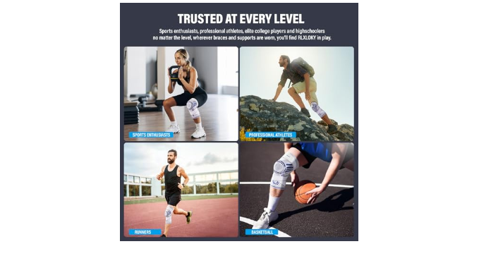 SUPPORT TECHNOLOGY— metal spring stabilizers fit tightly with your knee joint, 2 specially designed velcro fixing systems for best fit, open patella & back design and ultra-soft bandage of mesh weave technology.