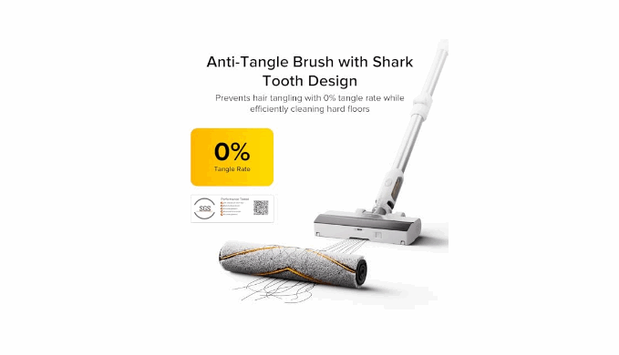 Effortless Deep Cleaning with 115AW Power: Tackle ground-in debris and stubborn pet hair on carpets and hard floors with 115AW of suction power. The anti-tangle brush of the stick vacuum with a serrated design actively prevents hair wrapping, reducing manual maintenance.