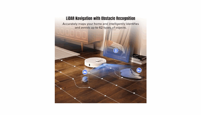 Reactive AI Obstacle Recognition: Keep your home clean and your pets happy with Reactive AI Obstacle Recognition. Equipped with structured light and RGB cameras, the Roborock Qrevo MaxV identifies and navigates around 62 different object types during cleaning, including your beloved pets. When approaching a pet, the vacuum halts its main brush and repositions itself to avoid startling them. Enhanced by LiDAR navigation, it generates real-time, precise maps of your home, ensuring optimal cleaning routes and avoiding obstacles effortlessly. This intelligent system keeps your cleaning routine smooth and your home organized.