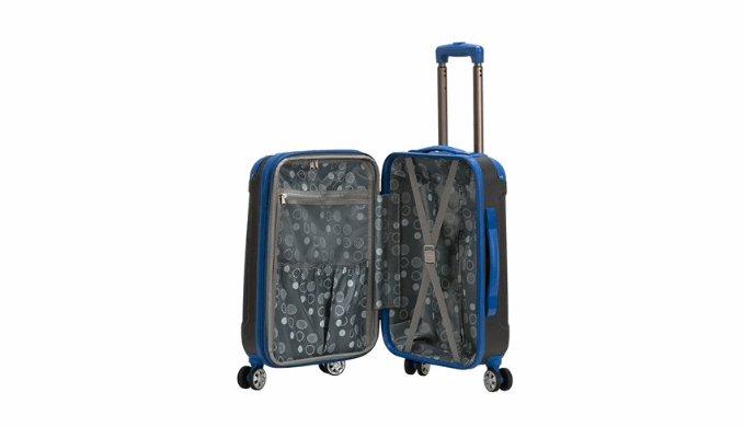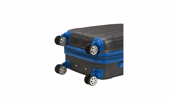 This carryon is made of ABS. The major benefits of this material - it is extremely lightweight, it is durable, and protects the contents of your luggage. Four multi directional spinner wheels rotate 360 degrees for easy maneuverability. This luggage allows you to pack more while avoiding the excess weight surcharges imposed by most airlines. • Multi-directional spinner wheels for easy maneuverability • Modern internal chrome telescoping handle with push button handle. • Interior mesh and zip pocket and elastic pocket * 5 year warranty * 20\"X13\"x9\" (22\" height with wheels) weighs 6.5 lbs