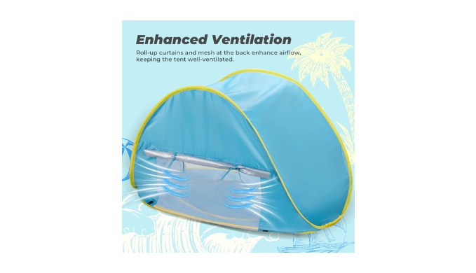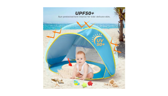 Child-Friendly Design: This baby beach tent features a mini pool, allowing babies to play in a safe water area, giving parents peace of mind to enjoy their beach trip. Simply fill it with water and add your child\'s favorite toys for endless fun.