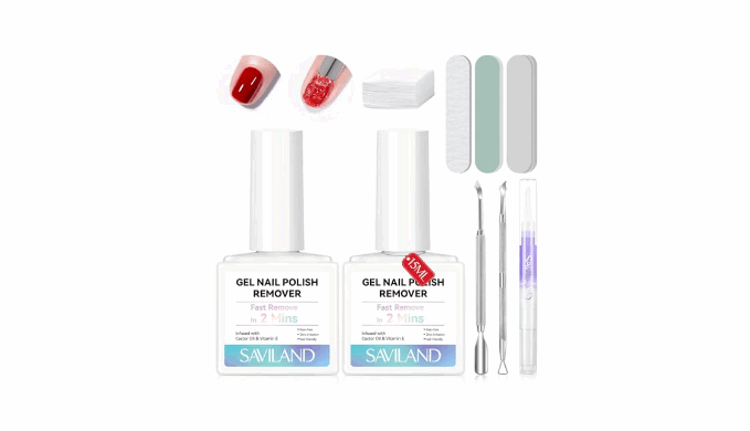Professional Gel Polish Remover Kit: The SAVILAND gel nail polish remover kit includes 2*15 ml nail gel remover, 2*cuticle pusher,1*cuticle oli pen,1*polishing block,1*nail buffer and 50*cotton pad. Effortlessly remove stubborn gel nails while preserving the health of your natural nails