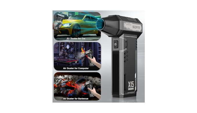 Powerful Air Duster : SDFM Electric Air Duster reaches speeds of up to 180,000 RPM, effectively removing dust and debris. It features three adjustable speed settings and multiple replaceable nozzles to suit different cleaning tasks.
