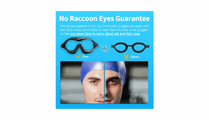 ➡️COMFORTABLE FIT & SOFT SILICONE SEALS: The Wide & Thick Silicone Eye sockets with the newest technology are super-soft and suitable for different facial shapes. They can distribute the pressure evenly and will not leave any traces after long-term use. The adult swim goggles have fit the eyes to a great extent without leaving any gaps to prevent water droplets from entering.