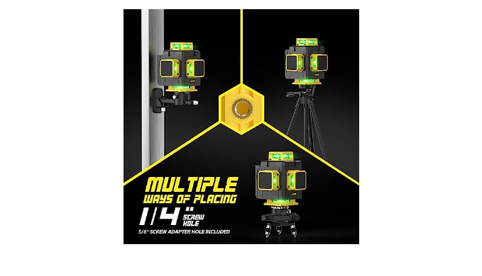 【Multiple installation methods】You can make the machine flexible by our various installation methods. By rotary base to make the level 360 ° rotation, easier to adjust the position of the laser and can also be mounted on a tripod. The magnetic stand can help you fix the level on the wall or attached to a metal surface, and there is a metal patch that can be used with the magnetic stand. When you want to work on a lower ground, you can use the lift table to lift the green laser level slightly and keep it on a flat surface. It is also compatible with 1/4 and 5/8 mounts.