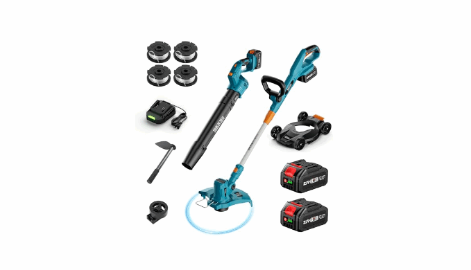 Lightweight Design For Effortless Use & Easy Storage Solution: Forget arm fatigue with our ultra-lightweight push string trimmer and blower set. The ergonomic design ensures comfortable handling during extended yard work sessions. This battery powered weed wacker combo easily breaks down for compact storage, fitting perfectly in garages, sheds, or closets – ideal for homeowners with limited storage space