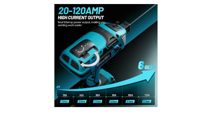 20-120 Amp Welding Output: Come with 20-120 Amp welding output adjustable, simple knob design, 6 variable current adjustment. Accurate current output make the welding work easier and the welding effect is more perfect