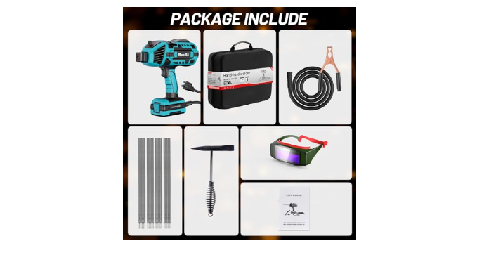 Complete Welding Accessories: In this package, will get 1*handheld welder machine, 1*Ground Clamp, 1* Auto Darkening Welding Goggles, 1*Welding Chipping Hammer, 20 *Welding Rod and 1*toolbox. Meet all your needs in welding.