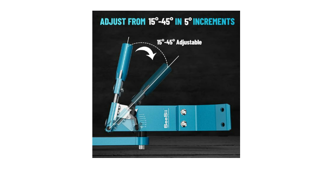 15°-45°ACCURATE ANGLE: The angle of this mower blade sharpener frame can be adjusted from 15-45°in 5 increments, providing flexibility to sharpen blades at different angles, ensuring optimal performance according to your needs