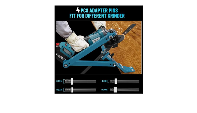 4 ADAPTER PIN & 4HOLDER BARS: This lawn mower blade sharpener tool comes with 4 different adapters for different type of angle grinder, so you don\\\'t have to worry about suitability. With the 4 sturdy holder bars, the sharpener frame can hold the blade tightly