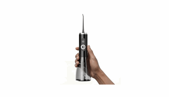 Please note: 1.The water pressure is low when the device is turned on; you will need to manually adjust it to increase the water pressure. This process takes approximately 5-6 seconds. This is to prevent gum bleeding or pain in customers with sensitive gums due to a sudden increase in water pressure. 2. A portable travel bag is not included in the package.