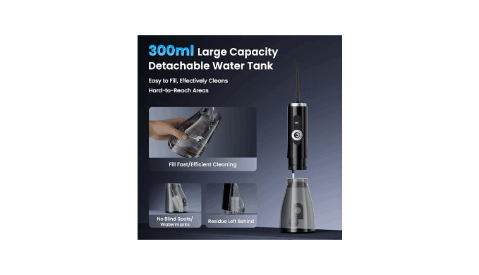 [300 ML Large Capacity Water Tank for Longer Cleaning Time] The electric flosser is equipped with a 300 ML removable water tank, which is twice as large as other models, and the sealed design prevents leakage and reduces the need for frequent refilling, ensuring fast and efficient oral care.Lightweight and portable, suitable for use when traveling or on business trips, and great to give as a gift