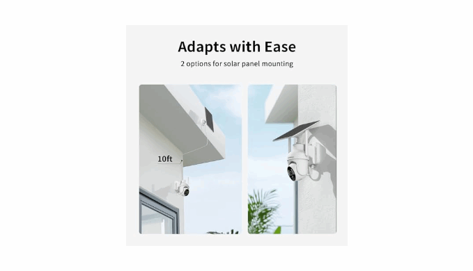 Effortless Installation & Setup: Experience the convenience of a 5-minute installation with its compact size and versatile installation design.Mount on a wall or attach it to the ceiling, installs it whichever way best fits your needs. Solar outdoor cameras support 2.4GHz Wireless WiFi Connection(5GHz WiFi is not supported).