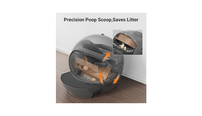 BETTER CLEANING: Compared to other automatic litter boxes, KungFuPet uses a artificial arm shovel that follows the entire cleaning process from bottom to top, 100% avoiding the situation where litter sticks to the inside of the litter box, which creates a clean environment for your cats. Please set a clumping time of 10 minutes or more on the App for better cleaning.