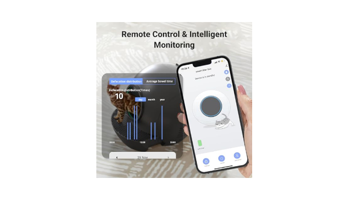 SMART SAFETY SENSORS: Building with double protection system. When the pet approaches the litter box, the sensor will detect sensitively, and the machine will automatically stop working to protect the pet\'s safety. kitty litter box will also sync data to your phone so you can monitor the cat\'s health at any time.