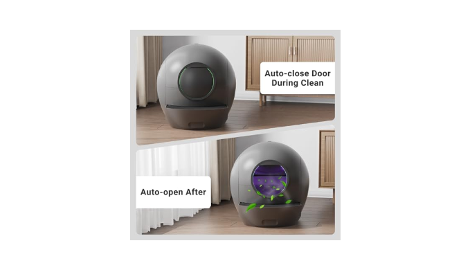 EFFECTIVE ODOR CONTROL: In order to reduce the worries of unpleasant odours in the owner\'s home, our litter tray is designed with an air system. After self cleaning, the system will automatically turn on the purple light to effectively work. In addition, the back cover is fully sealed, both of which serve to keep the air clear.