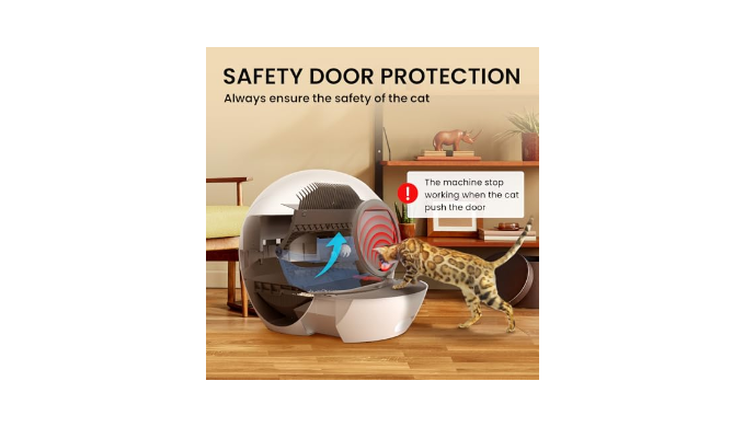 【Safety System】The self cleaning litter box is equipped with high-precision sensors and a radar detection system. When your cat enters the automatic litter box, the sensors immediately detect its presence and pause the cleaning process until the cat leaves. If the cat pushes open the robot litter box door while the system is running, it will automatically stop to ensure the cat\\\'s safety. These safety features help ensure the litter box is used safely, protecting your cat from harm.