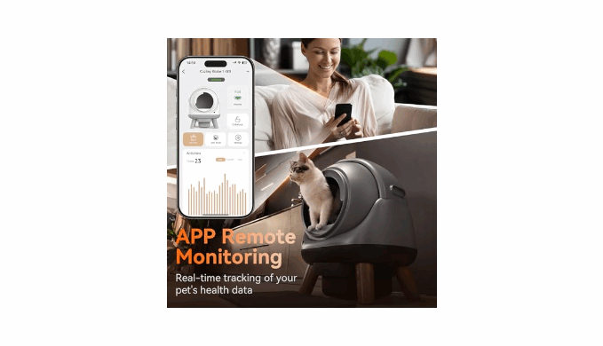Smart APP Remote Control - The G1 robot litter box offers effortless pet care with self-cleaning technology. This automatic cat litter box self cleaning connects via 2.4G Wi-Fi, enabling remote control, real-time notifications, and monitoring of your cat\'s litter habits. This self cleaning litter box has specially designed kitten mode, ensures gentle care for growing cats, combining smart technology with convenience for worry-free pet parenting.