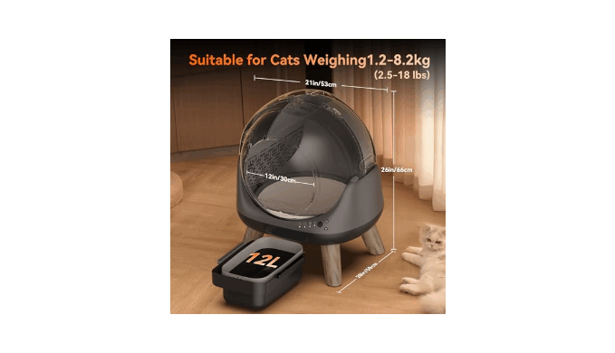 Capacity - The self cleaning litter box has a wide entrance (30cm/12inch), suitable for cats weighing 2.5-18 lbs, with a Body length ≤20 in and height ≤15 in. The large-capacity waste bin of the automatic litter box reduces cleaning frequency, making it ideal for busy pet owners or those who frequently travel short distances. Roller Care: Periodically clean the rollers to prevent debris buildup and ensure smooth functioning.