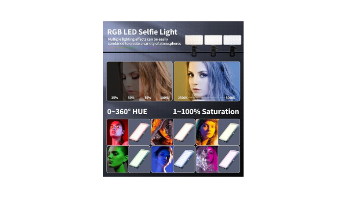【Versatile Lighting Options】The rechargeable selfie light has CCT, HSI and EFFECT modes. Including warm white, cool white, 360° full color and 21 special effect scenes, CRI 95+, you can easily create the perfect lighting atmosphere for any situation. From soft, natural lighting for everyday selfies to bold, colorful lighting for creative projects, our selfie lights have you covered
