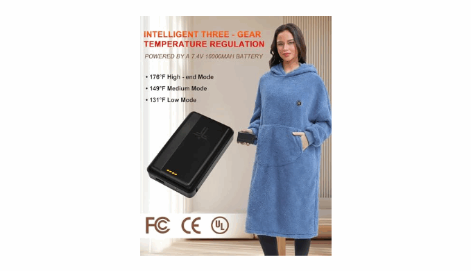 【Ultra-Fast Heating & Wireless】 This thickened heated hoodie is equipped with a certified 7.4V 16,000mAh battery, providing instant warmth right when you need it. It features three heating modes (131°F/149°F/176°F) and offers long-lasting battery life per full charge: 9-10 hours on low heat, 6-7 hours on medium heat, and 4-4.5 hours on high heat. Crafted with cutting-edge technology, this heated robe heats up rapidly while maintaining a consistent temperature.