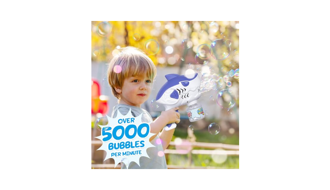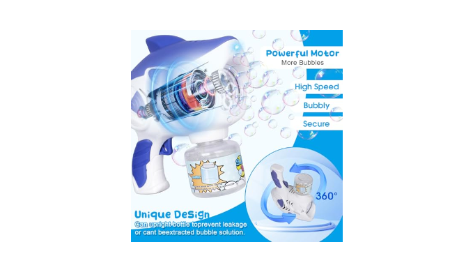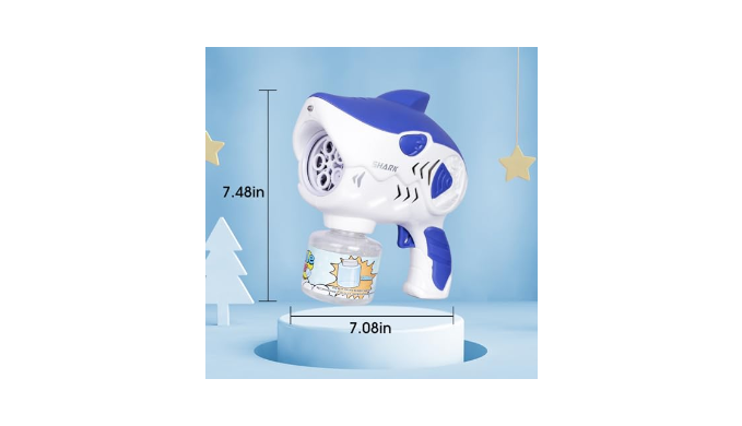 1. Unique Design: The Shark Bubble Gun features a captivating mechanical shark appearance that will instantly grab children\'s attention and spark their imagination. Its eye-catching design sets it apart from ordinary bubble guns, making it a must-have toy for kids.