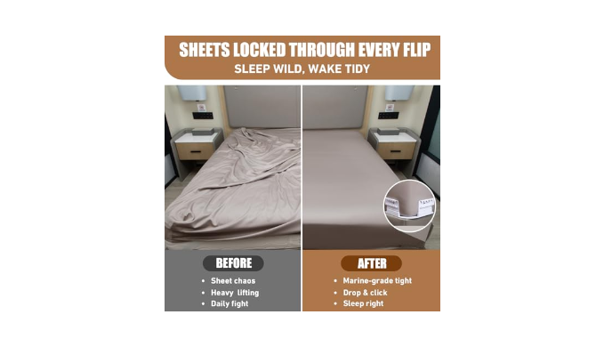 【No-Flip Magic – Installs in 10 Seconds!】No wrestling, no flipping – Slide the base of our Sheet Holder Lock Pro under mattress corners and done. Perfect for: Heavy beds (no lifting!), Seniors/solo setup (no strength needed) and Late-night fixes (works on made beds!). Rage-quit old grippers that demand mattress acrobatics. Ours sticks, locks, and forgets!