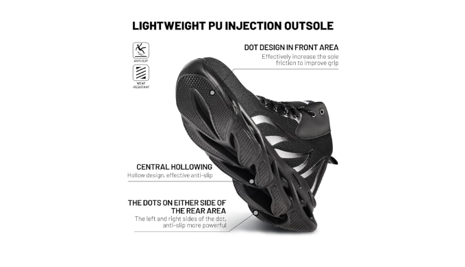 【Kevlar Midsole Puncture-proof】- European standards. Puncture resistance > 1100N. protects the sole of the foot from puncture injuries from sharp objects.ensuring your safety remains a top priority.