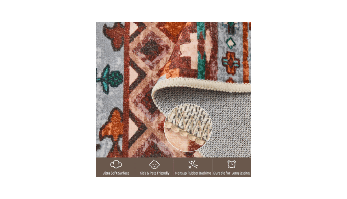 - Non-Slip Rubber Backing: The built-in non-slip TPR rubber backing grips the floor firmly, preventing slips and trips and keeping the rug securely in place.