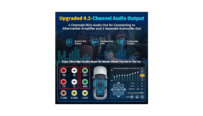 4.2-Channel Audio Output: This car radio supports 4 Channels RCA Audio Out for Connecting to Aftermarket Amplifier and 2 Separate Subwoofer Out. Rear Right/Left Speaker output, Front Right/Left Speaker output and 2 High RMS Power Subwoofer output. You can enjoy the outstanding sound quality and breathtaking bass effects. Perfect for music enthusiasts and drivers who enjoy music in your cars.