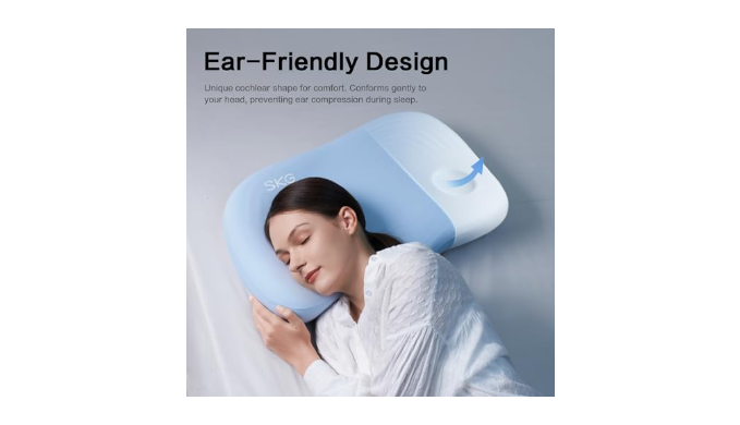 The ergonomic design, enhanced by a memory foam pillow, is crafted with the body\'s natural curvature in mind. SKG T3E cervical pillow offers targeted support for the shoulders and neck.