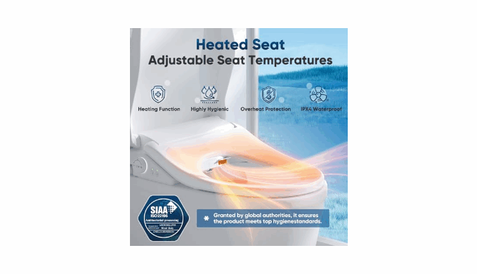 【Safety】:Crafted with SIAA-certified materials, this smart toilet seat offers safe, skin-friendly contact for peace of mind. The nozzle automatically self-cleans before and after each use, and built-in protections prevent overheating or accidental burns—ideal for daily family use