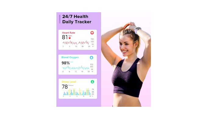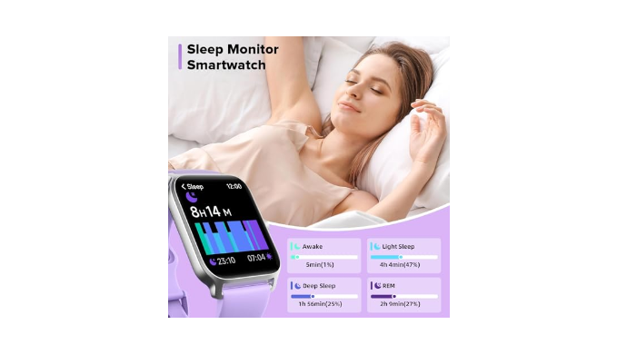 【24/7 Health Monitor and Sleep Tracker】:Smart watch for android phones /iphone equiped with 7 high-performance optical sensors, continuously recording your daily walking steps, distances, calories, and monitoring your heart rate, SpO2, stress level, and sleep status (deep sleep, light sleep,wakefulness); More features, such as sedentary reminders and water drinking reminders;Non-medical use