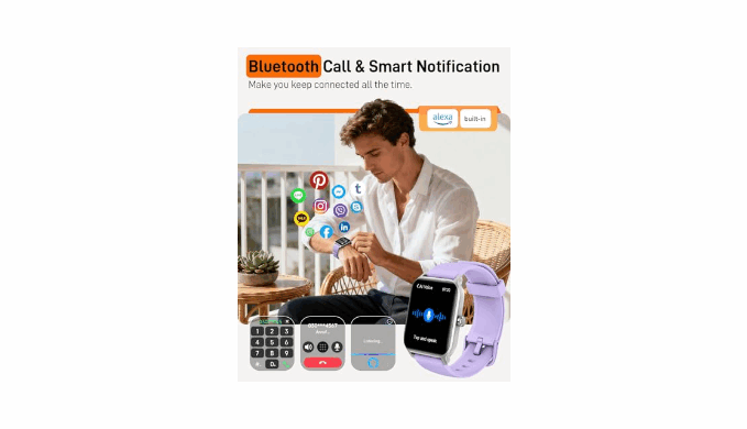 【Call Receiving/Dialing & Alexa Built-in 】:Smart watches for men women an advanced single-chip processor and a sensitive microphone, allowing you to make and receive calls without a SIM card.With Bluetooth 5.3, it offers faster and more stable connectivity. It also syncs contacts and stores call logs.Smart watch built with an AI assistant, enables smooth voice commands and hands-free calls