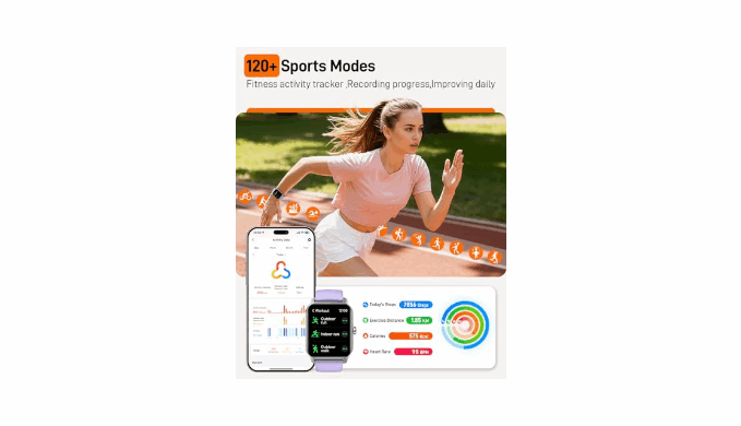 【120+ Sports Modes& 3ATM Waterproof】:The fitness tracker watch supports over 120 sports modes, including Walking, Running, Baseball, Basketball, Hiking, Climbing, Cycling, Football;Swimming, Yoga and more; The 3ATM waterproof design ensures it’s ready for your toughest adventures, from the gym to the pool