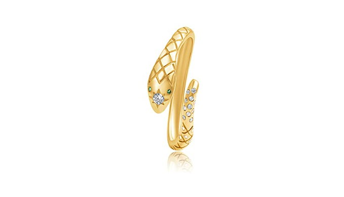 HIGH-QUALITY SNAKE RING: High polish snake ring with great quality created gemstones. You will get a snake ring in an exquisite gift box, and we will give you a soft cloth to wipe the ring along with the package