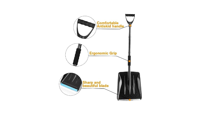 ``` Excellent Design ``` Equipped with ergonomic D-shaped handle, you can use less strength to remove snow, and protect your hands from frostbite when digging snow. Sponge pads will make you feel very comfortable and prevent your hands from slipping;