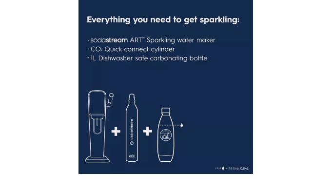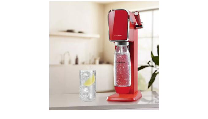 The NEW SodaStream Art Sparkling Water Maker celebrates the art of making your own fresh sparkling beverages at home. With a push of the lever, turn flat water into fresh sparkling water and customize it to your liking.