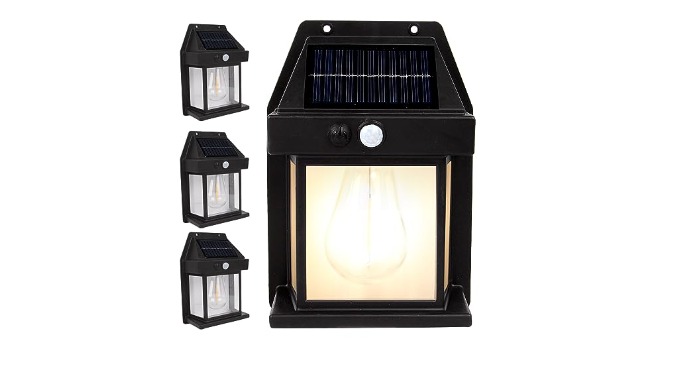 【Motion Sensor】: Our solar wall lights outdoor has a motion sensor, and there are three modes to switch. Mode 1 changes to strong light when low light detects motion, mode 2 changes to strong light when motion is detected from the off state, and mode 3 maintains strong light brightness with or without motion.