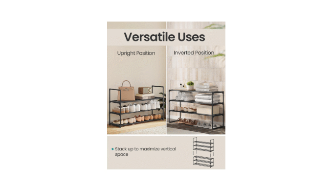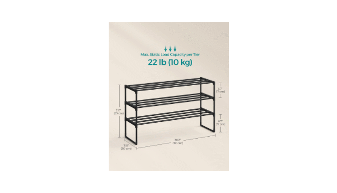 【ROBUST AND DURABLE】Connected by quality plastic connectors, this shoe organizer made of thick metal tubes holds up to 22 lb per tier, giving your footwear a reliable home