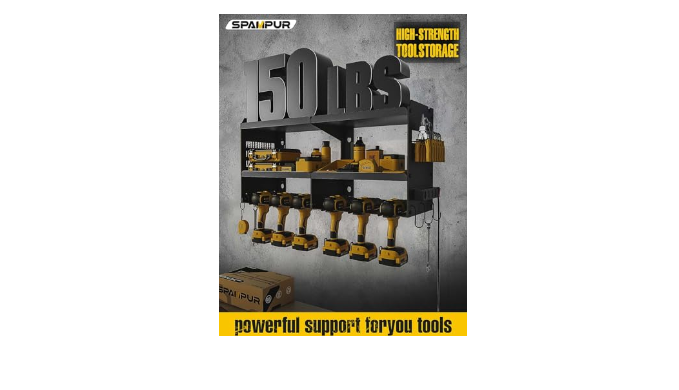 【 150 lbs Load-Bearing Capacity 】 The drill storage wall mount is made of heavy compact steel metal. After load-bearing testing, the utility racks can support up to 150 pounds on sturdy walls. Never again worry about the shelf breaking or the tool holder falling from the wall up and down. Our power tool rack can hold your power tools of any weight