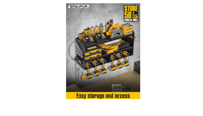 【 Store 50+ Kinds of Tools 】 Our cordless tool organizer is suitable for both indoor and outdoor use and compatible with pegboards. You can store your charging stations, batteries, toolboxes, drill bits, hammers, and other garage tools without any extra hassle