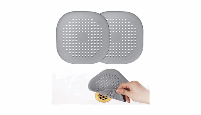 Square Hair Drain Cover for Shower Silicone Hair Stopper with Suction Cup Grey/2pcs